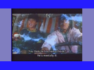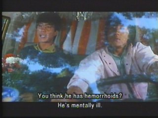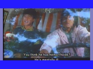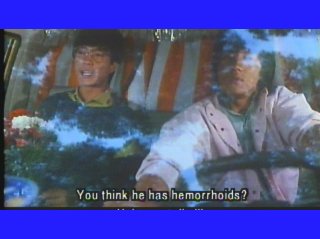 This example comes from a classic Jackie Chan film "Wheels on Meals." You can see from the chopped image that the subtitles just don't even make sense, albeit funny, in the scene. Fortunalty, most widescreen TV's have adjustments to view this movies subtitles properly.
