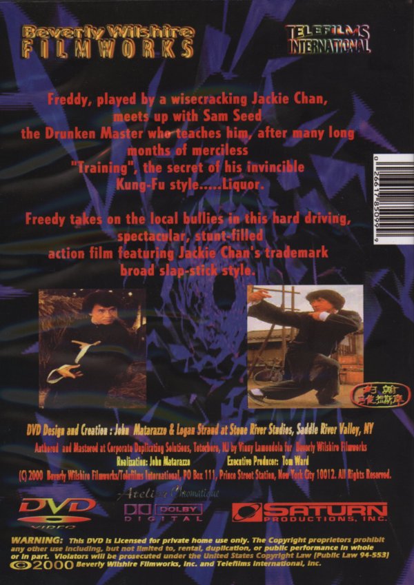 This is a pirate copy that I came accross while browsing the web so I ordered it. As you can see from the cover art, all of the pictures on the cover are from Drunken Master 2, even though the movie is Drunken Master 1. And you can see it is very poorly put together. The video itself is presented here also, and I must say it is VERY poor.
