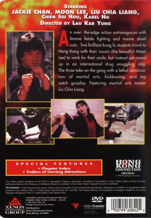 Strange, The scenes with Jackie Chan in them don't fit in with the rest of the movie. What is this deceptive tatic used? Moon Lee does appear with Jackie Chan in the first scene? If you've watched this movie then you probably know what I mean about the Jackie Chan scenes not fitting in with the rest. The Jackie Chan scenes are actually taken from the HK version of The Protector, which also stared Moon Lee--see the connection?